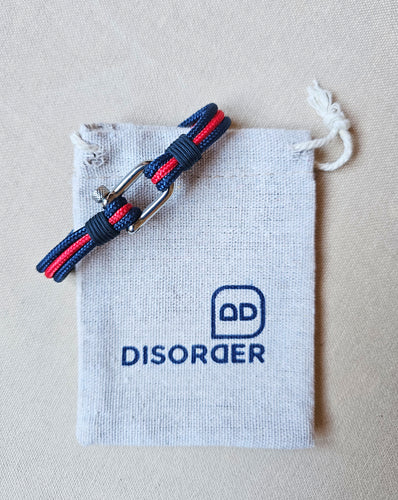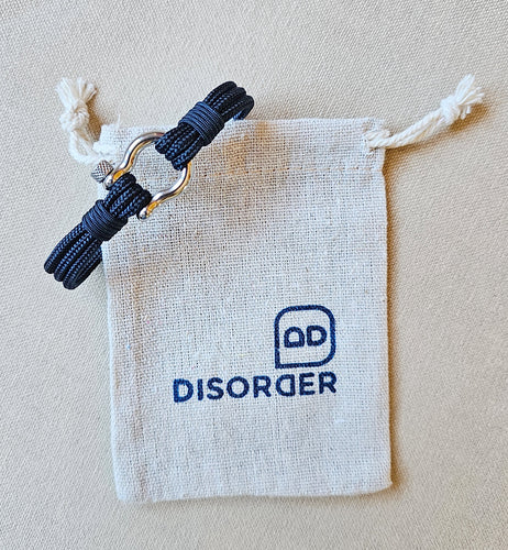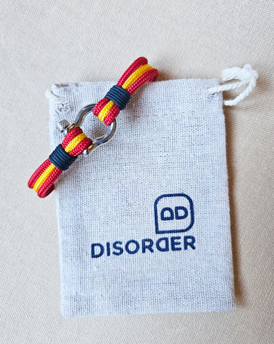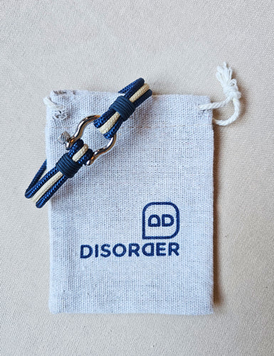 Pulsera realizada a mano en cordón náutico de nylon de muy alta calidad de 3 y 4 mm de diámetro en colores a elegir; como detalle principal lleva un grillete de lira en acero 316 a modo de unión; cierre de también en acero inoxidable 316 grabado a láser, resistente a la corrosión del agua salada.
