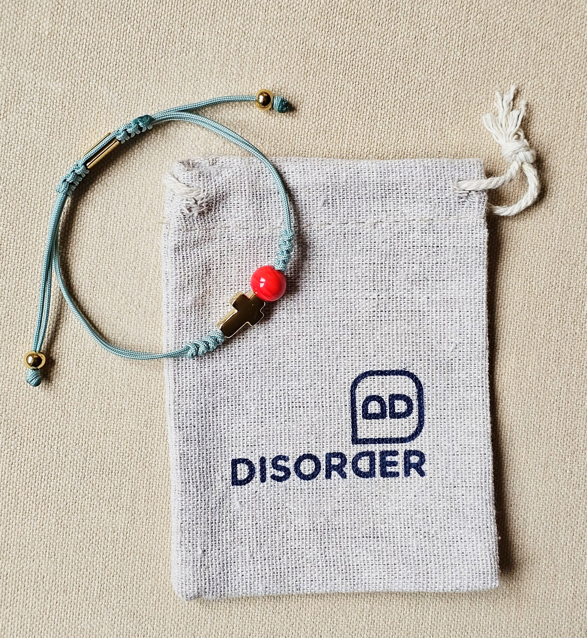 Pulsera ajustable ( talla única) hecha a mano en cordón de nylon de color aguamarina de 1.2 mm de grosor, lleva una cruz dorada como pieza central en acero inoxidable 316 y detalle de una bola de MURANO en color Rojo; cierre ajustable a modo de taba dorada de acero inoxidable 316 para mayor comodidad con dos bolas más en las puntas.